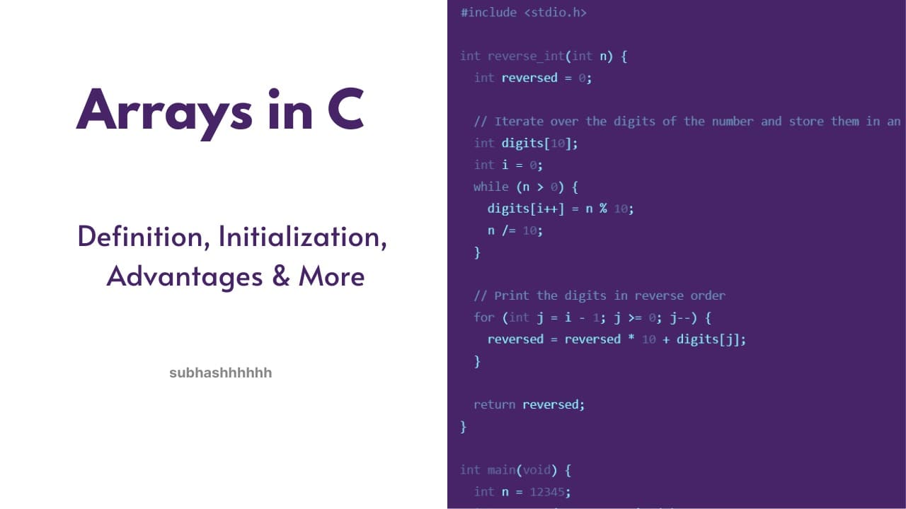 Arrays in C are a collection of elements of the same data type, stored in contiguous memory locations. They are a useful data structure for storing and accessing a large number of elements efficiently. To declare an array in C, you use the following syntax: type array_name[array_size]; Here, type is the data type of the elements in the arra... Read more 29 Dec 2022 - 2 minute read
